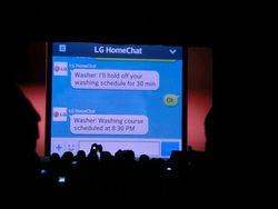 同社のPresident and Chief Technology officerのDr.Skott Ahn氏が登場し、製品関連の技術的な話にはじまり、家電コントロールのために自然言語処理に対応し、LINEとパートナーシップを結んだというメッセージングシステム「LG Home Chat」、曲面ボディが特徴な「G Flex」、LGのスマートテレビに搭載された「WebOS」などを次々に紹介していった。