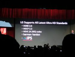 また4Kテレビでは「HDMI2.0」「HDCP2.2」「HEVC(H.265)コーデック」「Harman/kardenオーディオ」などに対応することを紹介。HDCP2.2は今後の4Kコンテンツが標準的に使うようになる可能性があるので、これに対応することは重要だろう。