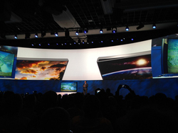 テレビ製品については、2014年の戦略の中核となる取り組みとして「UHD」のテーマを宣言。カンファレンスではまず、湾曲ディスプレイ搭載モデルとして世界最大サイズとなる105型のUHDテレビを2014年中に発売することを発表した。