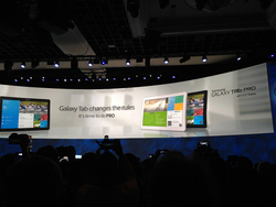 Samsung Electronics America presidentのTIM BAXTER氏は、「アメリカ人の55%がタブレットを利用し、52%がストリーミングビデオを視聴している」と、映像コンテンツの視聴スタイルが広がっていることを紹介。同社がスマートフォンとあわせてGALAXYブランドで展開しているタブレット製品の新モデル「GALAXY Note PRO」「GALAXY Tab PRO」を発表した。