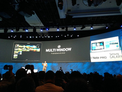 新たに「Multi Window」という4画面表示に対応する点が特徴で、そのほかにも「Cisco Web ex」というテレビ会議ができる機能や「Remote PC」という遠隔操作機能を搭載する。GALAXY Note PROはスタイラスペン「S Pen」によるジェスチャーコマンドとウィンドウ操作にも対応しており、フルサイズのバーチャルキーボードも提供される。