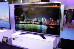 2014 International CESのシャープブースは、プレスカンファレンスで発表された製品をゆったりと並べており、実際の画質をじっくり確認することができる。