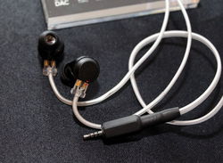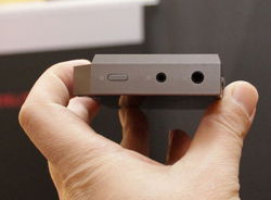 なお、本機を家庭内で使用する場合を考え、据え置きアンプにバランス出力するためのアダプターも同社ブースで見ることができた。2.5mmのバランス出力端子から音声を出し、アースは3.5mmのアンバランス出力端子から取るという。このため両方の端子を塞ぐ構造となっている。