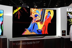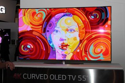また、77インチの有機EL・湾曲4Kテレビ「77EC9800」(関連ニュース)も登場。独自の画像エンジン「Tru-ULTRA HD Engine Pro」を搭載し、4Kアップスケーリング機能も装備する。55型の有機EL・湾曲4Kテレビも展示されていた。