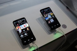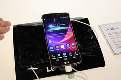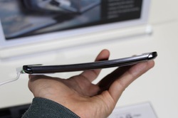 スマートフォンでは、6インチ・有機ELの湾曲ディスプレイを搭載した「LG G Flex」が集中的に展示され、来場者の注目を集めていた。解像度は1,280×720ピクセル。LG G Flexのために世界初の湾曲バッテリー技術も開発したという。