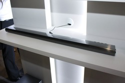 「NB4540」は、4.1ch(サブウーファーは別筐体)対応のスタイリッシュなサウンドバーで、合計出力は320W。HDMI端子を搭載し、Bluetoothも内蔵。奥行きは35mmで、47インチのテレビとマッチングされている。さらに大型のテレビとの組み合わせが想定された上位モデル「NB5540」も展示されていた。