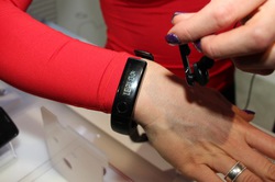 ウェアラブル端末「Lifeband Touch」のデモにも注目が集まっていた。本機はフィットネス用として歩数やカロリー計算が可能。心拍計を内蔵するイヤホン型端末のデモも合わせて行われていた。