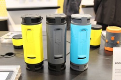【CES】SCOSCHE、アウトドア用BTスピーカー「boomBOTTLE」の防水モデルなど展示