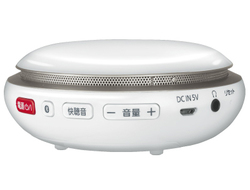 スピーカー部は、3.6cmのコーン型フルレンジを2基搭載するバスレフ構造としている。実用最大出力は1W+1W(8Ω/1kHz)。本体は104W×45H×104Dmmで、質量は約191g。カラーはホワイトとブラックの2色をラインナップする。音声出力用に3.5mmステレオミニ端子も備えている。