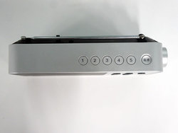 スピーカーはモノラルで出力は0.5W。外形寸法は253W×136H×61Dmmで、電池を含む質量が約1,060g。持ち運びに配慮して本体背面にくぼみによる取っ手も装備している。