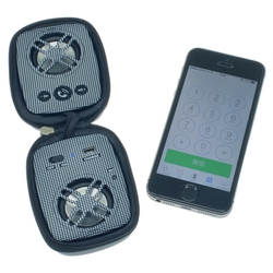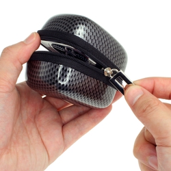 カーボン調の模様を施した外装で、ファスナーをあけるとスピーカーが表れるというデザインを採用。本体には音楽の早送り/巻き戻しボタンに加えて、ペアリングしているスマートフォンに着信した際の通話ボタンも搭載している。