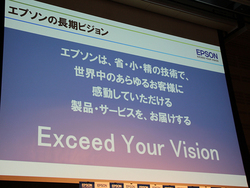 発表会の冒頭では、同社 代表取締役社長 平野精一氏が登壇し、エプソンが掲げる長期ビジョン「Exceed Your Vision」のコンセプトを交えながら挨拶。「私たちはホームからビジネスまで、様々なソリューションを提供してきた。そしていま新しいフェーズとして、エプソンの成長領域といえるウェアラブル製品に注力している」と語った。