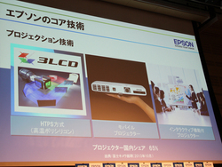 続いて登壇したビジュアルプロダクツ事業部 事業部長 渡辺潤一氏は、従来モデルBT-100からの進化点など、BT-200の製品特徴について紹介した。渡辺氏は「エプソンでは、“映像”を通じてユーザーに感動を届けている。プロジェクター“dreamio”では家族みんなで共有できる大画面の楽しみ、そしてMOVERIOではいつでもどこでも自由に映像を楽しむことができるウェアラブルな楽しみだ」と説明し、「個人の楽しみだけではなく、ビジネスシーンへの活用も可能で、幅広い使い方ができる」と語った。