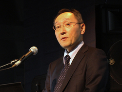 AV・流通営業本部 企画室長 岡田豊氏は、今後のヘッドホン製品の流通戦略について説明。「ヘッドホン市場は台数規模でとても大きい。様々なブランドが乱立している今の状況下では、製品の差別化をしないと埋没してしまう」と述べた。