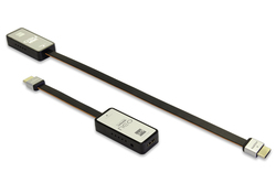 従来規格のHDMIケーブルの両端に取り付けるだけで4K信号の伝送が可能になるというアダプター。一般的な長尺HDMIケーブルのバンド幅と到達可能距離を倍増させることができるという。内蔵チップにはカナダphaseHD社の特許技術を用いたものを採用。自動適応機能を備え、機器の調整は不要とのこと。最長20mまでの敷設済みHDMIケーブルに対応する。