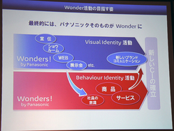 竹安氏によれば、企業理念を表すMind Identity(MI)が「A Better Life, A Better World」であり、このMIのもと、“顧客視点”によって新しい価値を生み出すBehaviour Identity(BI)活動、 広告表現等などで思想を視覚化するVisual Identity(VI)活動を通して、Corporate Identity(CI)を形にしてユーザーに「Wonder!」と思ってもらえる製品・サービスを提供していく思想だという。