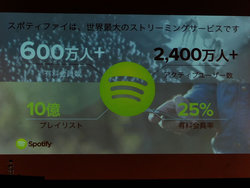 Spotifyは、欧米やアジア地域の一部などで展開されているサブスクリプション型音楽配信サービス。日本法人のスポティファイジャパンや日本での公式Facebookページも存在し、「日本でのサービス利用は現在準備中」と以前からアナウンスされているが、本日のセッションでは、日本上陸の発表などは行われなかった。
