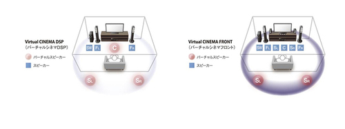 バーチャルサラウンドの仕組みは、前方に設置した2ch分のサラウンドスピーカーが担う帯域のみ独立してバーチャル処理させる。これにより、サラウンドスピーカーを使用しない従来のバーチャルサラウンド機能「Virtual CINEMA DSP」よりもさらに臨場感豊かなバーチャルサラウンド再生が実現できるとしている。
