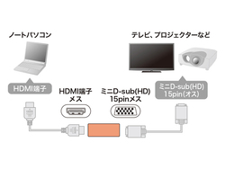 HDMI出力信号をミニD-sub15pinアナログ信号(VGA)に変換できる製品。本機を使用すれば、HDMI入力端子を搭載せず、VGA入力のみ対応するプロジェクターやディスプレイなどに、PCなどのHDMIポートから画像や映像を出力することができる。最大表示解像度は1,920×1,200または1080p/60Hz。ドライバーなどをインストールする必要はなく、ケーブル接続だけで使用することができる。なお、HDCP規格および音声出力には対応していない。