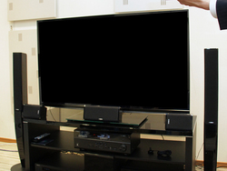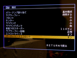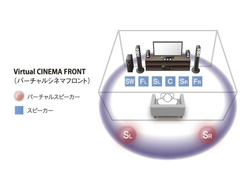 使用方法としては、L/Rサラウンドスピーカーを後方ではなく前方に設置することでバーチャルサラウンドを再現する。5.1chシステムを使用する場合は、フロントスピーカーの隣にサラウンドスピーカーを設置するスタイルで、スクリーン/テレビ側に全スピーカーを並べて配置する形となる。サラウンドスピーカーを設置するのが難しい部屋環境でも、バーチャルでサラウンドが楽しめるように配慮した機能だ。