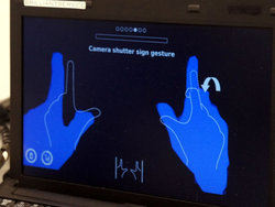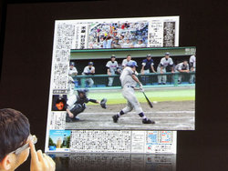 同技術では、例えば新聞の紙面に掲載されている写真を見ると、紙面に掲載しきれなかった写真や動画が目の前に展開されたり、料理を見ると、その料理に関連した情報が表示されるといった仕組み。
