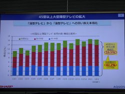 こうした活動もあり、同社の薄型テレビ売上は45型以上の大型モデルの構成比が伸張。2014年2月度は金額構成比で全体の42.2%を大型モデルが占めたという。