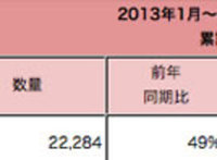 なお、増税直前の駆け込み購入が最も激しかったのは企業向け会計ソフトなどの「業務ソフト」で、3月の前年比が341.8%を記録。増税に直接関連する製品であるため駆け込み購入が集中したが、4月速報値でも259.3%と大幅増を維持しており、依然特需が継続しているという。