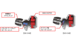 上位モデル「SE-CX9」はこの「BASS EXCITER」に加えて、フルレンジスピーカーユニットとしてBAドライバーを採用。各楽器の音やボーカルまで広帯域にわたりキレのあるクリアな音で微細なニュアンスを再現することを狙った。