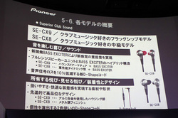 「SE-CX9」「CE-CX8」についても、フロアの迫力と高音質の両方を追求したモデルであると百足氏はコメント。イヤホンで理想のクラブミュージック再生を行うべく、新ドライバー「BASS EXCITER」を開発したとのことだ。