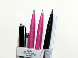 一般的なスタイラスペンだけでなく、ペン先がフェルトでも反応するという点が大きな特徴で、インクが出ない状態のサインペンで文字などを書き込むことが可能。ペンは導電率を通常よりも少し上げる工夫をしているものの、この点とインクが入っていないこと以外は普通のサインペンと同じ仕様。静電容量式のディスプレイ側をフェルトでのタッチ操作に対応させ、ペン入力の使い勝手を高めた。