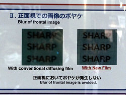 シャープでは、TN式の液晶パネルに貼り付けることで、下方向からの視野角を大きく広げる光学フィルム技術をデモ。