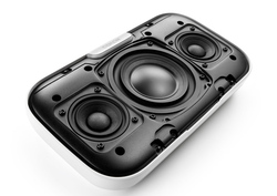 54mm大型マグネットを搭載した57mmフルレンジスピーカー2基と、ダブルサスペンション採用の100mmパッシブラジエーター、音響特性を最適化するDSP MaxxAudioを搭載。音質に悪影響を及ぼす定在波を抑えるよう配慮したラウンドデザインも採用し、これらにより、「サイズを超える低音とクリアなサウンド、そして広がりのある音楽再生を楽しめる」としている。