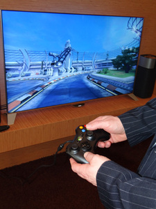 最新バージョンには3つの新機能がある。ひとつが「ゲーミングモード」への対応。本体にプリインストールするAndroidプラットフォーム用のゲームコンテンツ、または追加ダウンロードしたゲームコンテンツをAmbilightを起動した状態で楽しむと、ゲームの操作に合わせてLEDが同期し、画面の映像を最適化する。ふたつめが、室内に設置したフィリップスのLED照明器具と連動し、視聴時の室内照明環境をさらに向上させる機能だ。