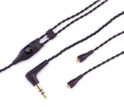付属の純正ケーブルは経年による硬化が少ない編み込みタイプで、タッチノイズを軽減する効果も得られる。またもつれにくいのも利点だ。さらに、MFi対応のリモコン/マイク付ケーブルも同梱されている。ケーブルはいずれもY型で、MMCXコネクターで着脱にも対応している。