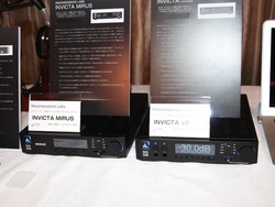 同ブースでは、エミライが取り扱うResonessence Labsの製品も出展された。目玉となったのは、同社のフラグシップとなるD/Aコンバーター「INVICTA」通常モデルである「INVICTA v2」と、ヘッドホン出力を省略することでESSのDACチップ「ES9018」を各チャンネルに1枚ずつ使用した「INVICTA MIRUS」(関連ニュース)の比較試聴だ。