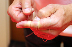 特徴は、高音質を実現しつつ、非常に細くて軽量かつ強靱なことと。銀メッキを施した銅線6本にケブラー被覆で構成されている。一見、すぐ切れてしまうのではと不安になる細さだが、写真のように強く引っ張っても断線しないという。