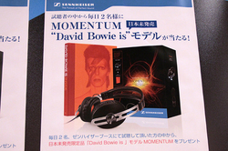 会場では、デヴィッド・ボウイとコラボしたMOMENTUMの限定モデル「David Bowie is」が当たるキャンペーンも行われている。こちらはヴィクトリア・アンド・アルバート博物館での展示会を記念して作られたもので、日本での発売は行われていない。ブラックのハウジングに、鮮やかなオレンジのステッチがあしらわれたヘッドバンドが印象的なモデルだ。ゼンハイザーブースで製品の試聴を行い、twitterもしくはFacebookのアカウント名を応募すると、抽選で各日2名・計4名様にプレゼントされる。この貴重な機会、ぜひ応募してみては?