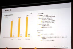 同社では2014年4月1日付けの組織変更に伴い、1Qより主に主にゲーム分野及びMP&C分野を従来構成していた事業を再編し、業績報告におけるビジネスセグメント区分の変更を実施。この再編に関連して、従来のその他分野に含まれていたネットワーク事業をゲーム分野に統合し、ゲーム&ネットワークサービス分野に名称変更する。また、従来のMP&C分野に含まれていたモバイル・コミュニケーションカテゴリーをモバイル・コミュニケーション分野とし、それ以外をその他分野に移管する。