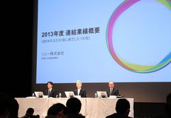 ソニーは、2013年度通期(2013年4月1日〜2014年3月31日)の連結業績を発表した。売上高および営業収入は7兆7,673億円で前年比14.3%増となったものの、営業損益は265億円で前年度から2,000億円減少。当期純損益は前年度415億円の利益に対し、今期は1,284億円の赤字を計上した。