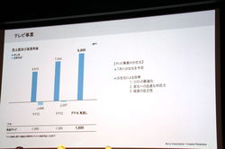 このうちテレビ事業単体で見ると、売上げは7,543億円、営業損失は257億円となった。「公約としていた黒字化を達成できなかった」と吉田氏は詫び、その上で「テレビ事業の過去10年の累積赤字は7,900億円に達する。この数字は重く受け止めなければならない」とした。また吉田氏は「過去10年、マネージメント担当者が次々に代わった。私見だが、経営の軸が不安定だったことも、ここまでの赤字が続いた一因であると考えている」と述べた。