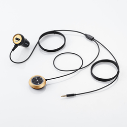 音声出力端子は3.5mmステレオミニ。そのほか、本体には充電用のUSB端子を搭載しており、本機を介してスマホなどを充電することができる。LBT-ACR02HFの方は、ハンズフリー通話用のマイクも装備する。