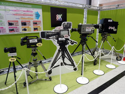 スーパーハイビジョン撮影用機材の進化を示すデモや展示も多数展開されている。まずカメラでは、新たに120Hz対応の超小型カメラが登場した。