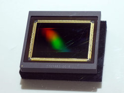 なお、画素数を増加させると1画素あたりの面積が小さくなり、感度が低下する。そこで従来のものより大きな光学サイズを採用することで1画素あたりの面積を確保し、感度の低下を抑えている。また、35mmフルサイズとほぼ同じになるように設計し、市販のスチールカメラ用レンズを利用できるようにもしている。