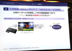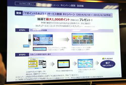 まずキャンペーン第1弾として「Tポイントためよう!」を実施。これは前述の、T会員番号と機器を紐づけて「Tポイントためよう!」サービスへアクセスし、登録するだけでTポイントがもらえるというもの。登録するだけ東芝ライフスタイルからもれなく200ポイントがもらえるほか、ほかに抽選で約100人に1人の確率で、CCCから800ポイントがもらえる。実施期間は6月10日から2015年4月30日まで。