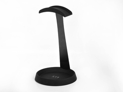 ヘッドホン固定部には、型崩れを防ぐため幅に余裕を持たせたというシリコン素材を採用。ケーブルを台座部にまとめられるので、すっきりと設置できるとしている。本体の高さは25cmで、ホームユースの大型ヘッドホンやポータブルヘッドホンなど幅広く使用できるように配慮している。本体質量は361g。