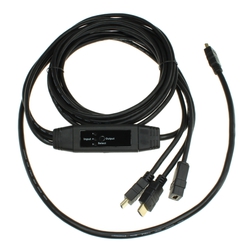 ケーブル自体に入力切替機能を搭載しているため、切替器なしで入力切替を行うことが可能。ケーブル中央にあるボタンを押すことで入力切替でき、切替機能の電源も接続機器からの給電のみで動作するため別途電源は不要。