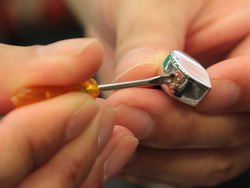 くみたてLabは、同社が手がけてきたカスタムIEM製品各種のほかに、同社初のユニバーサルモデルとなる「Trio」も参考出展している。本機は純銀製の筐体が特徴的で、開発に際しては3Dプリンターで筐体の原型を作成し、それを元にして型をとったという。