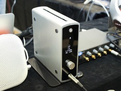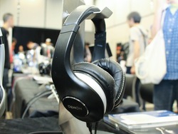 DENONブランドでは、5.6MHz DSDや192kHz/24bit PCMに対応したUSB-DAC/ヘッドホンアンプ「DA-300USB」(関連ニュース)や、Music Maniacシリーズのフラグシップヘッドホン「AH-D7100」、ミドルクラス機「AH-D600」など定番モデルを組合わせたデモを展開。DENON初のBluetoothスピーカー“envaya”「DSB-200」も展示されていた。