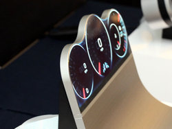 会場には12.3型のフリーフォームディスプレイを使用した自動車用インパネのイメージを展示していたが、現在でも40型程度までは大型化可能だという。将来的にはフレームレス液晶テレビなどへの活用も可能だとしているが「現時点で大型化しても、自由な形状という特徴を『じゃあどう利用するか』といった問題もある」(同社説明員)との言葉もあった。