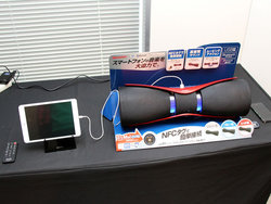 独立したNFCタグを2個同梱しており、タグにタッチすることでペアリングが可能。ペアリングと電源のオン/オフが連動しており、本体と離れた場所に置いてあるNFCタグにタッチするだけで一連の動作を行えるようにしている。なお、タグには本体情報があらかじめ埋め込まれる仕様(本体と付属NFCタグが1対1で紐づく)であるため、別売アクセサリーとして単品販売するなどといった予定はないという。